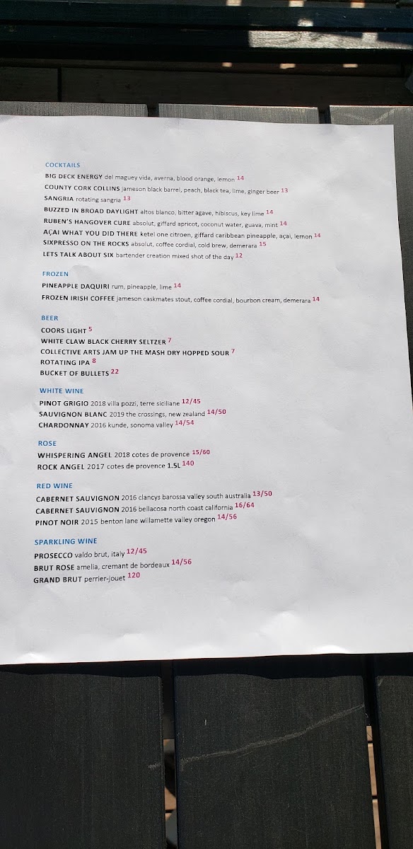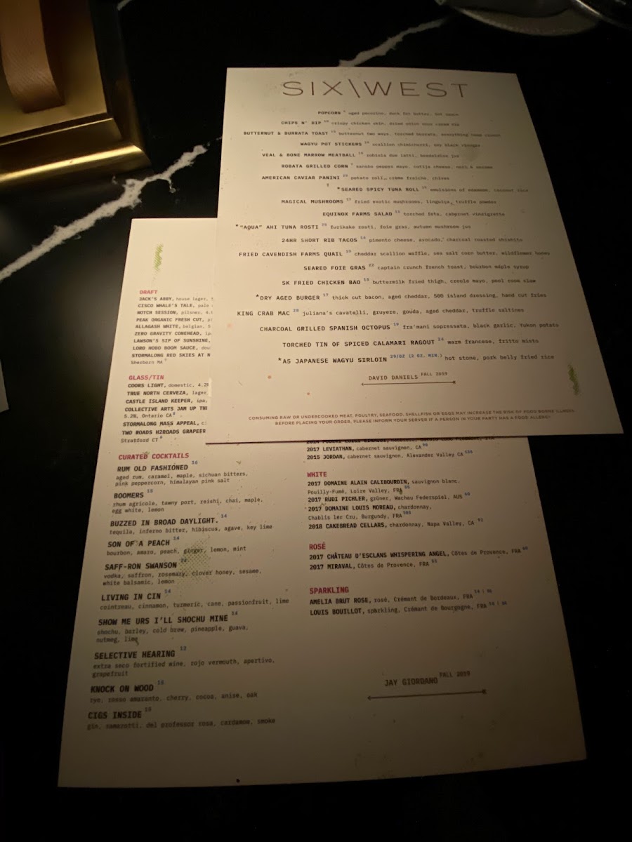 Six West Menu